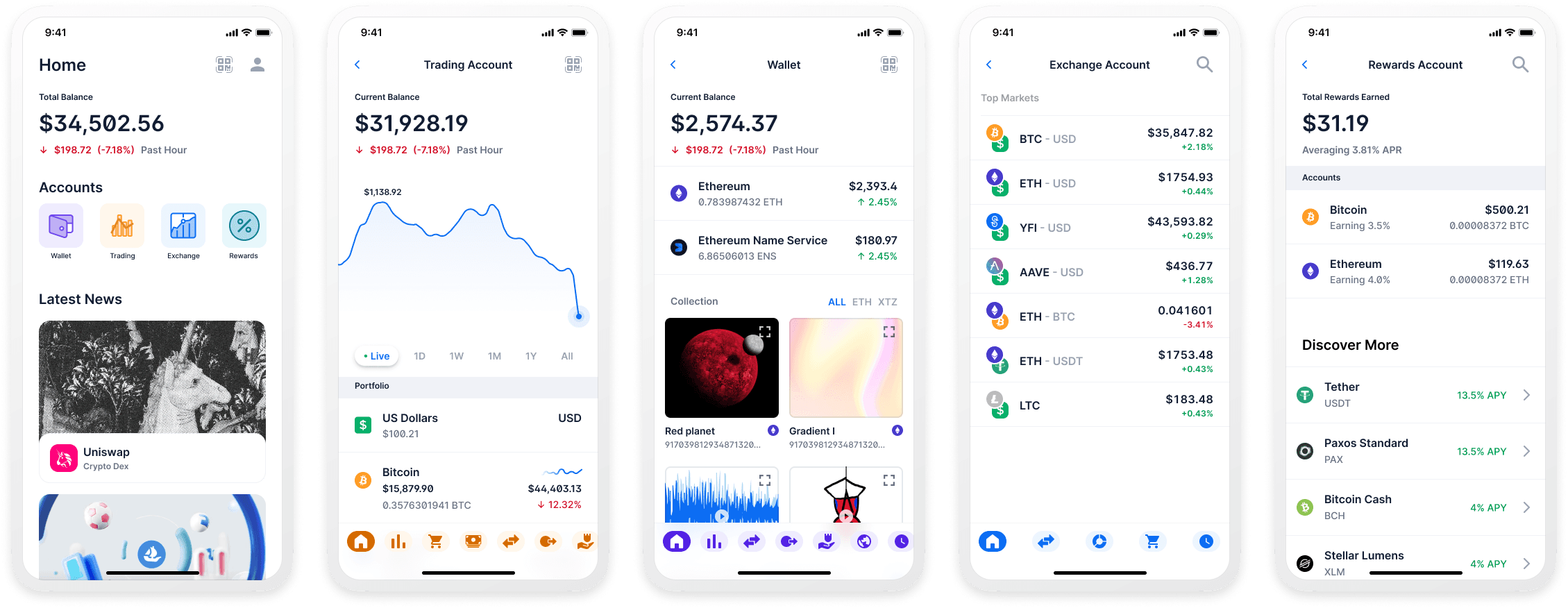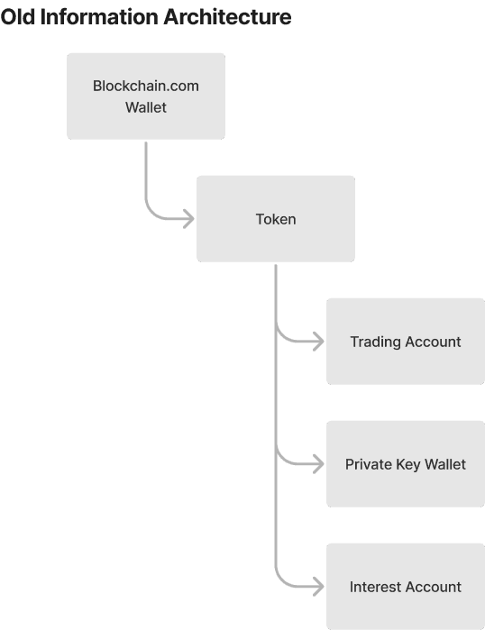 The biggest indicator that we had a screwy hierarchy was the number of support tickets for users asking what the difference is and why they can’t buy or sell into one but can in another. I played around with ideas that took inspiration from traditional finance apps, but quickly found that the constraints of other navigational elements in the app made it less scalable.